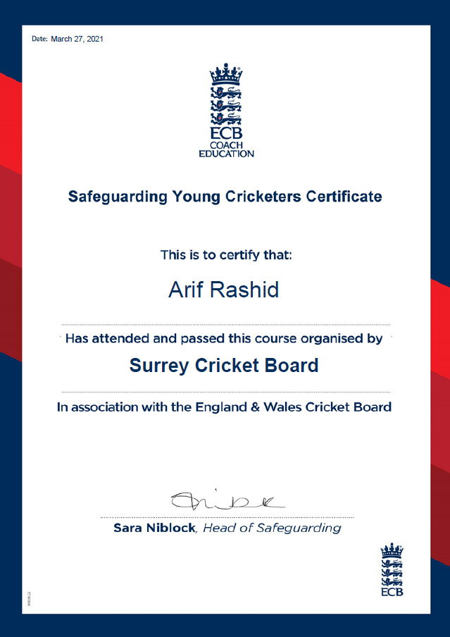 I, Arif Rashid, have been a coach for over 20 years with extensive experience. I am currently working as Coach at Ashtead CC, St. George’s Hospital University Medical School and In Touch Cricket.